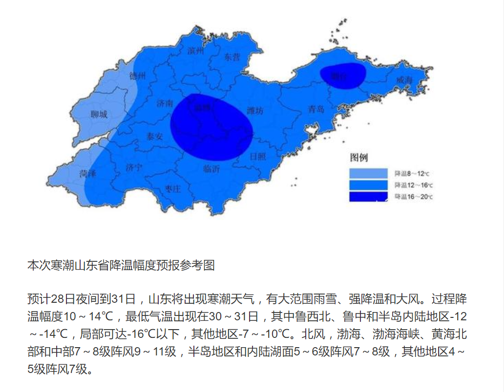 受寒潮天氣影響,山東遭遇雨雪、大風齊襲,山東省氣象臺繼續發布寒潮黃色、暴雪黃色和道路結冰橙色預警信號。