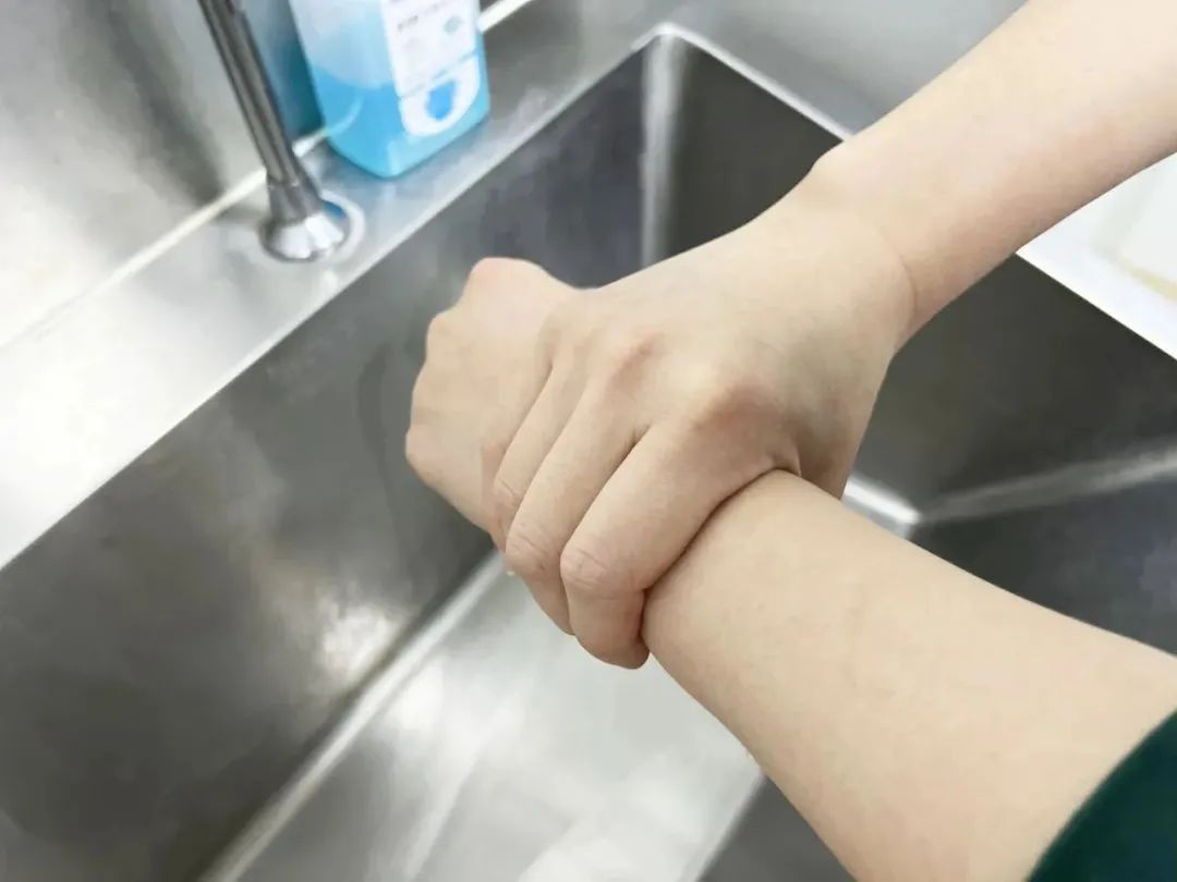 在流動水下徹底沖凈雙手,擦干,取適量護手液護膚。